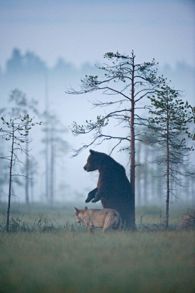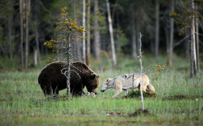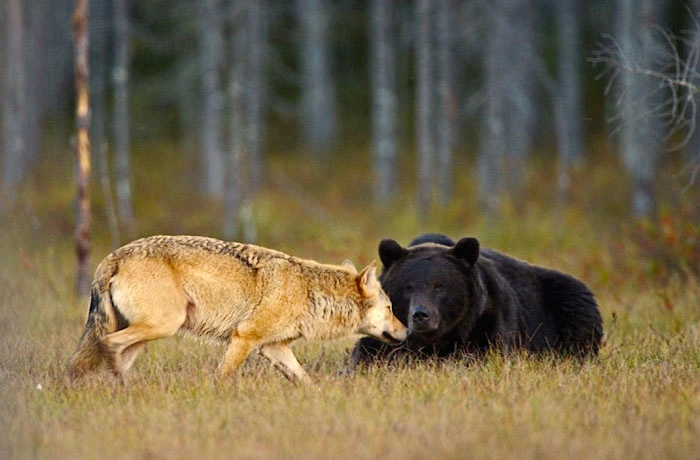 Playful banter in the wilderness.In an interview with TheInfo.me, Lassi added, “Everyone is welcome to visit Base Kuikka in Finland to see wolves, bears, and wolverines. Right now, there’s a wolf family of 10 to 12. Bears typically wake in April, and from April to October, visitors can often spot bears, wolves, and wolverines coexisting.”