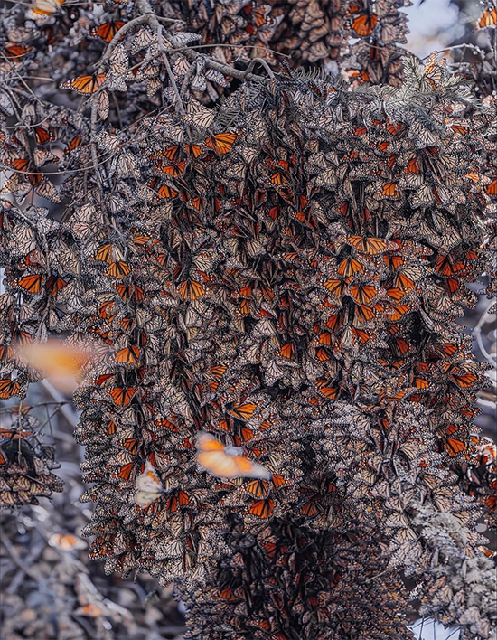 Recently, a wildlife photographer managed to document this incredible phenomenon in stunning clarity. His images reveal entire trees draped in fluttering wings, their branches shimmering in the sunlight as the butterflies rest before continuing their long trek. Through his lens, the monarchs’ migration transforms from a distant biological marvel into a deeply emotional portrait of endurance and unity within nature. The sight of these insects moving as one vast, living current across the continent reminds us of the fragile interconnectedness that binds ecosystems together.The unique migration that spans generations