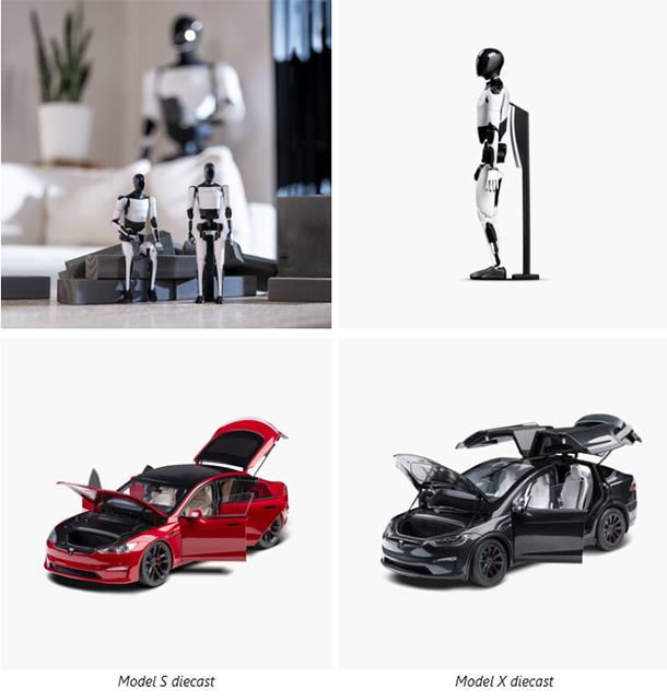 Tesla continues to expand its reach into collector culture with the launch of the Optimus robot action figure. Inspired by the second-generation humanoid robot demonstrated during the Robotaxi unveiling event, the figurine boasts over 40 individual parts and 20 points of articulation, offering an uncanny resemblance to the real-life bot. Fans can also enjoy a functional charging stand for the figure and the playful inclusion of a CyberHammer.Priced at $40, the Tesla Bot action figure is already a hit, selling out quickly and leaving hopeful buyers waiting for a restock. Its detailed engineering and affordable pricing make it a potential collector's item poised to rival popular figures like Optimus Prime.Additionally, Tesla introduced meticulously crafted diecast models of its Model S Plaid and Model X Plaid vehicles. Designed by Tesla’s in-house studio, these 1:18-scale replicas replicate the precise CAD data used in manufacturing the actual cars. With official badges, decals, and available in three signature colors, each diecast costs $195 and is a must-have for Tesla enthusiasts.Tesla Bot Action Figure: A Collector’s Dream