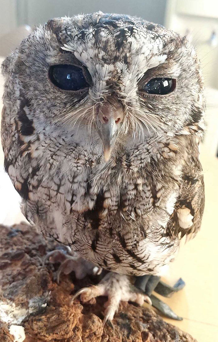 The owl was taken to a nearby wildlife expert, where a closer examination revealed something extraordinary—his eyes sparkled like a star-filled night sky. This wasn’t just a poetic observation; the owl’s eyes had a dazzling, galactic appearance due to a rare condition. His remarkable eyes led rescuers to name him “Zeus,” after the Greek god of the sky and thunder.Life After Rescue: Zeus Finds a Permanent Home